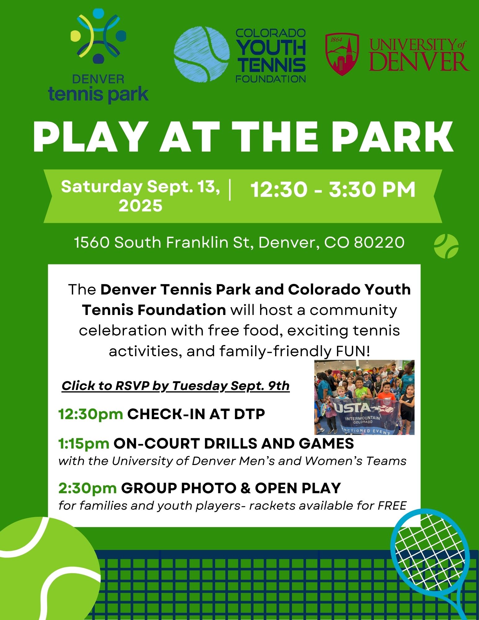 This annual event brings together the Colorado Youth Tennis Foundation (CYTF) supported programs and players (and their families) for an afternoon of tennis, fun, and community. It’s a fantastic opportunity for young athletes to connect, play, and be inspired.